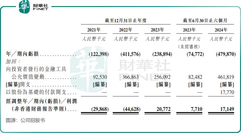 招股书显示,2021年至2023年及2024年上半年,圣贝拉经调整利润分别为-2986.8万元、-4462.8万元、2077.2万元及1714.9万元。