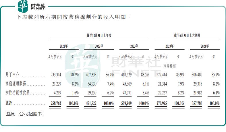 圣贝拉的野心不止在月子中心,公司于2018年推出家庭护理服务,2021年又收购广禾堂食品,进军女性功能性食品供应。由此,圣贝拉形成了月子中心、家庭护理服务及女性功能性食品为主的收入结构。