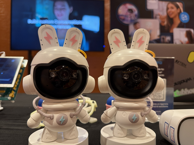 为进一步展示 AIDK 解决方案的应用潜力,博通集成携手声网,充分利用声网领先的实时多模态对话式 AI 技术,联合推出了智能眼镜、陪伴机器人、智能音箱、智能玩具等多款智能产品原型机,这些原型机在不同场景中展现了突破性的对话能力和交互体验,吸引了众多参会者的关注。