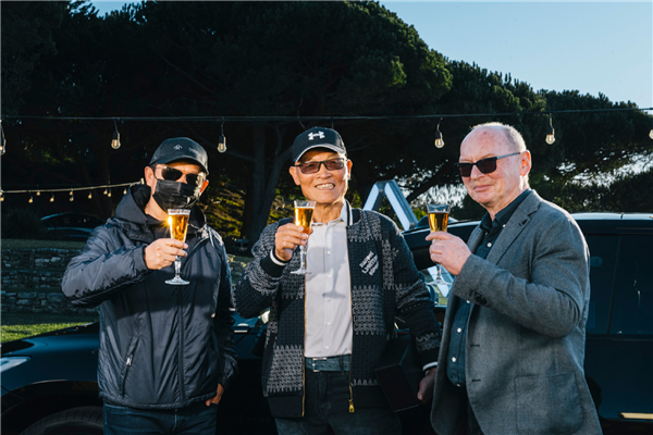 FF全球CEO Matthias Aydt、FF创始人兼首席产品及用户生态官贾跃亭以及其他公司高管共同现身交付仪式,大家举杯庆贺。