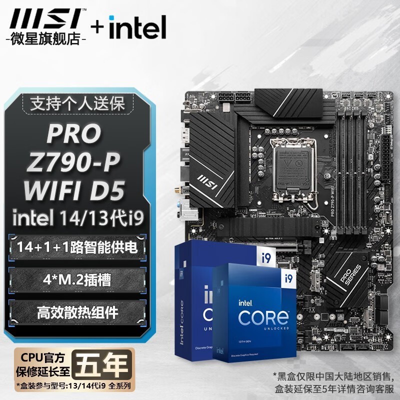 微星 Z790-P主板+i9处理器板U套装特价4379元