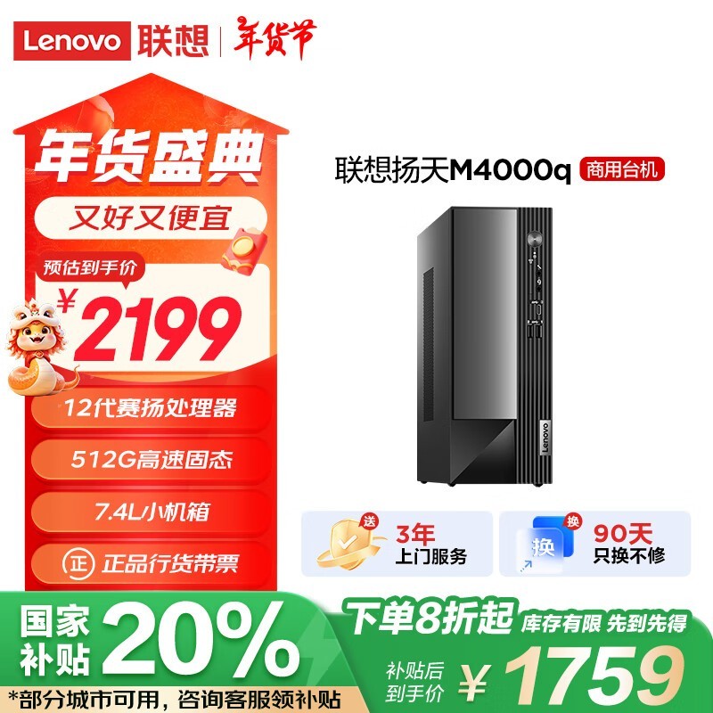 联想扬天M4000q商用办公电脑 1759元到手价!