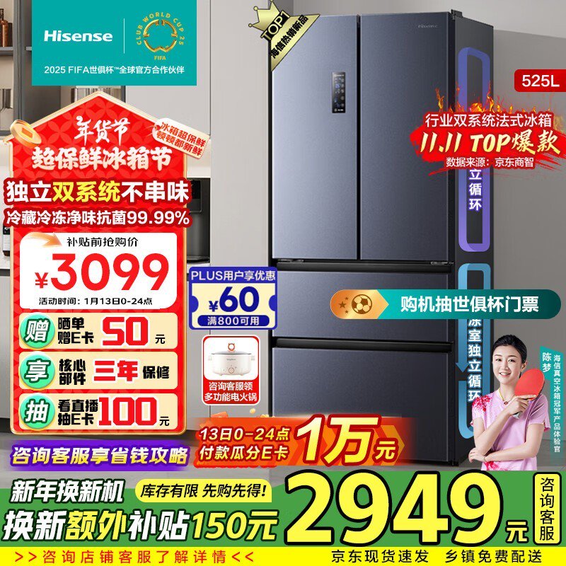 海信一级能效家电大促来袭,原价3399元到手仅需1890元