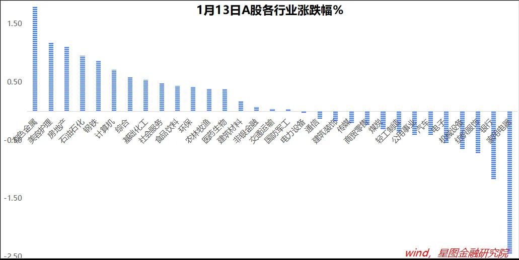 行业层面,超过一半的行业收涨,但家用电器、银行跌幅靠前,拖累红利和权重指数表现。