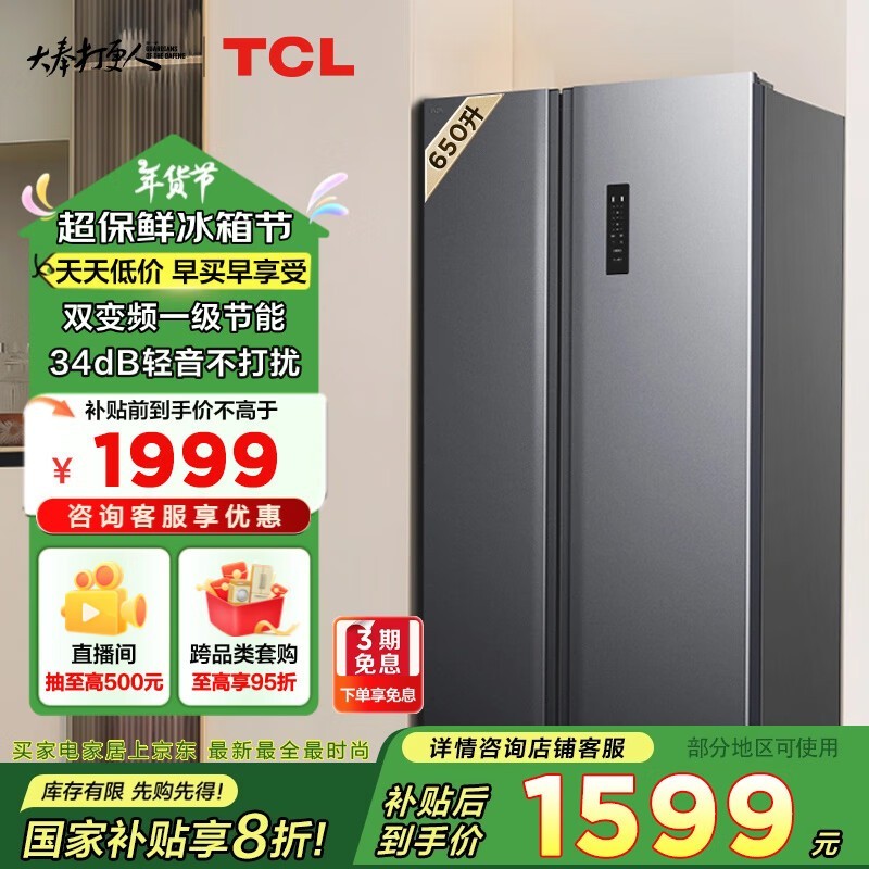 TCL R650晶岩灰冰箱1488元抢购