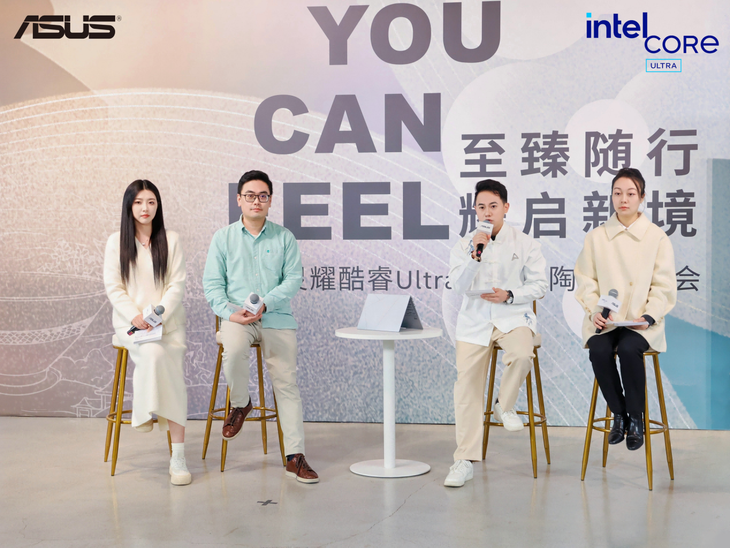 随后,华硕电脑高级产品经理邹易澄携手英特尔发言人、景德镇陶瓷艺术家辛瑶遥、科技达人@demi开箱,围绕灵耀新品三大关键词——灵感耀动、极 致工艺、美学荟萃,重磅揭开灵耀系列新品魅力。现场掌声雷动,气氛火热。