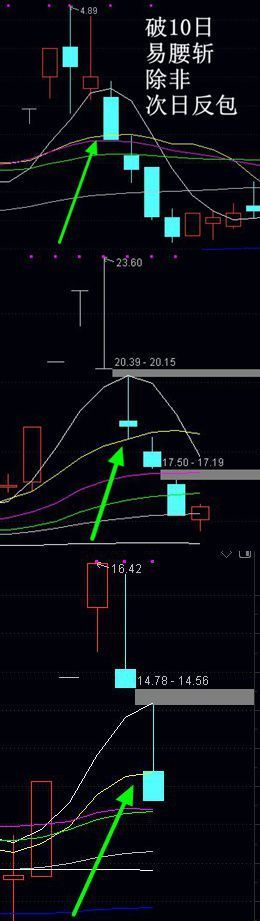 看上面截图案例,所以早上就跌破10日线或是跌停的,那么一般就是短线顶部,至于跌多久取决于指数跌多久,大盘指数十几年都是3000点左右,跌多涨少,所以一般都会跌到腰斩或是连续跌1--2个月,所以短线收盘破10日线的注意是顶部,次日早上不能反包顶部无疑,后面跌多涨少