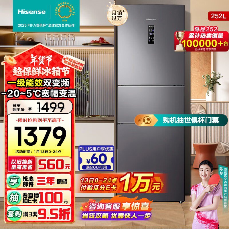海信倍多分系列BCD-252WYK1DPUJ冰箱超强优惠来袭