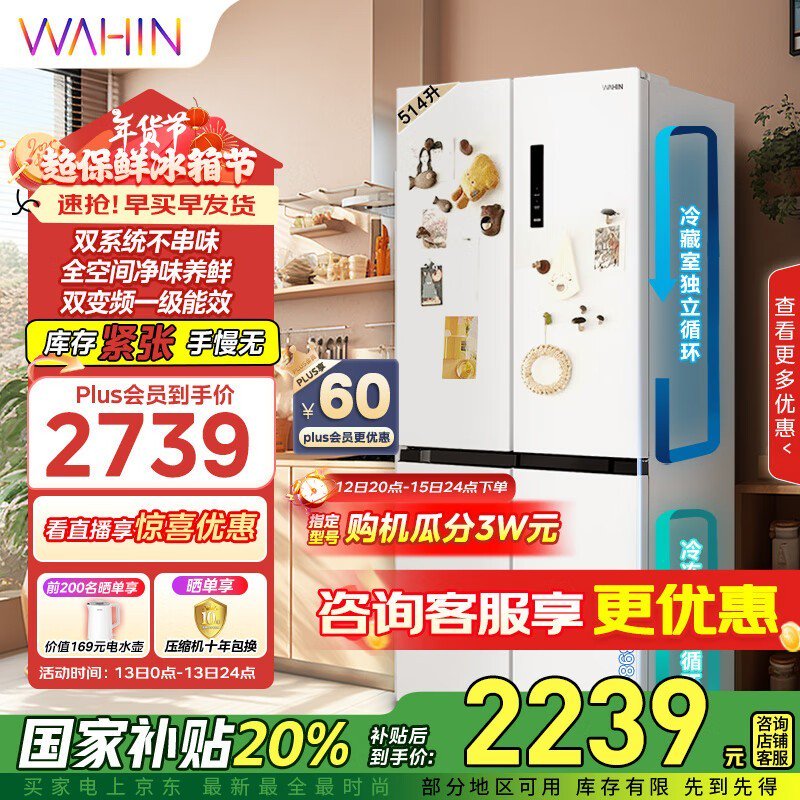 华凌HR-539WSPZ对开门冰箱 活动价只需2057元
