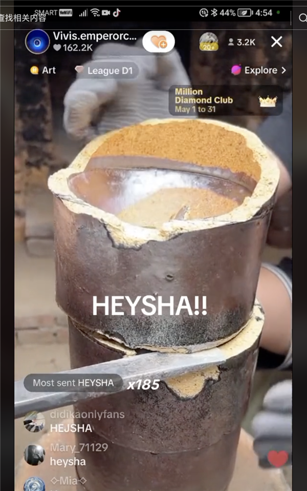 现在沉迷其中的老外,把窑工的号子Heysha都当作了直播间家人的口号,每逢开窑,留言板便会遍布口号,这为建盏出窑平添了几分神秘主义色彩,让原价几块在国内没人买的玩意,轻易卖到几百块,还能让老外感觉自己捡便宜了。