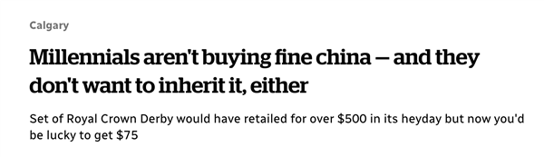 欧美老人现在比较无语的一点是,越来越多的孩子拒绝传统,不愿意接受传承几代人的家族传家宝——名牌瓷器套装。