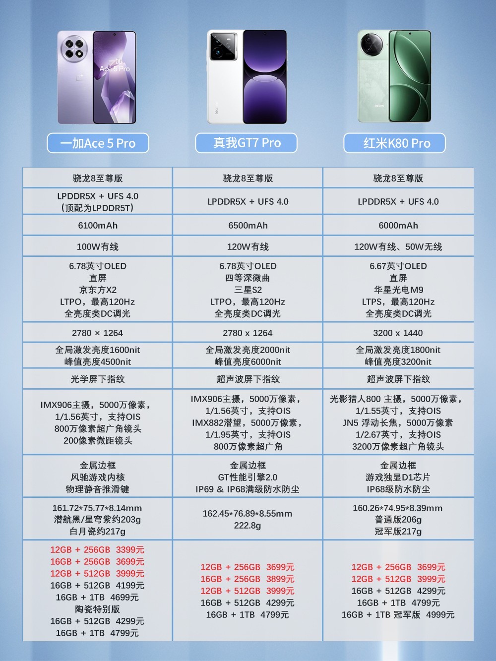 如果预算非常紧张,且就是想拿来玩儿游戏,那么12GB+256GB的版本就够用,3399元的一加Ace5 Pro非常合适。