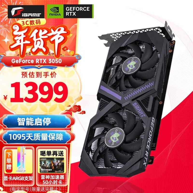 七彩虹GeForce RTX 3050显卡1319元秒杀!