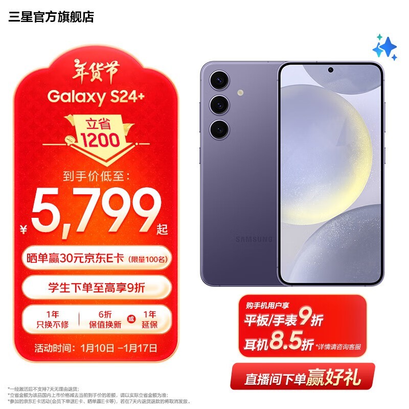 三星旗舰手机大降价!Galaxy S24+ 5G仅售6119元