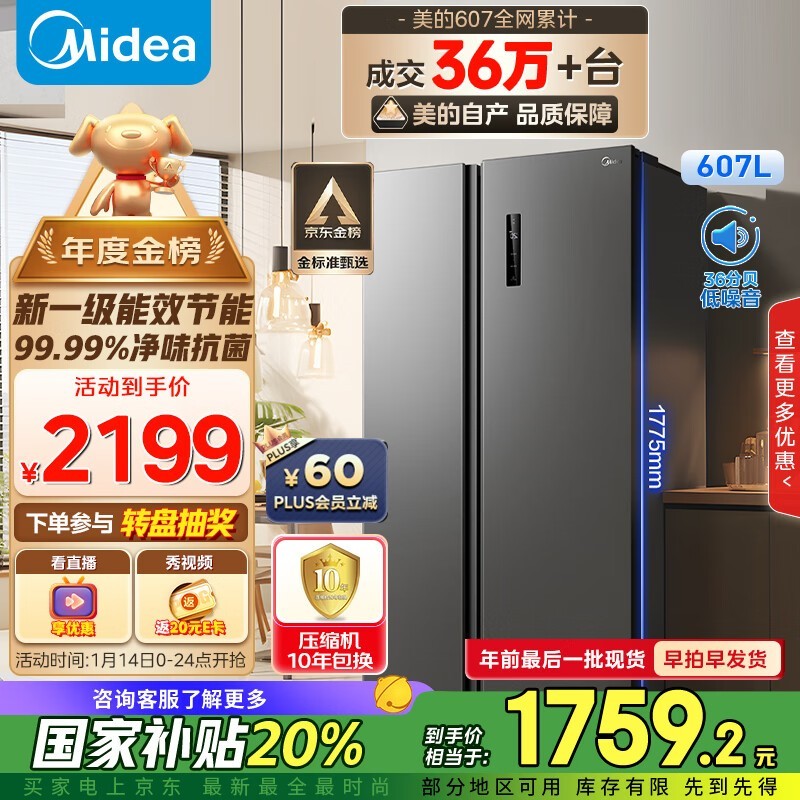 美的双开门电冰箱1499元秒杀!