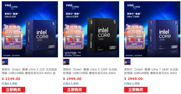 全新的英特尔酷睿Ultra 200S非K处理器部分产品已经在国内平台上架开售,售价1999元起。