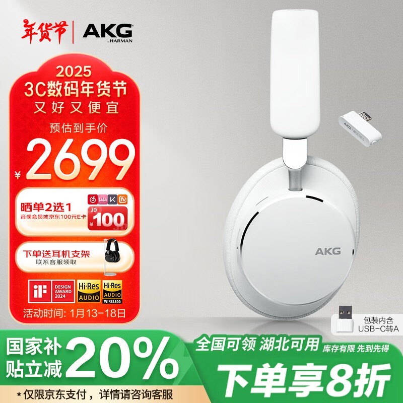 AKG N9头戴式蓝牙耳机只要2111元!