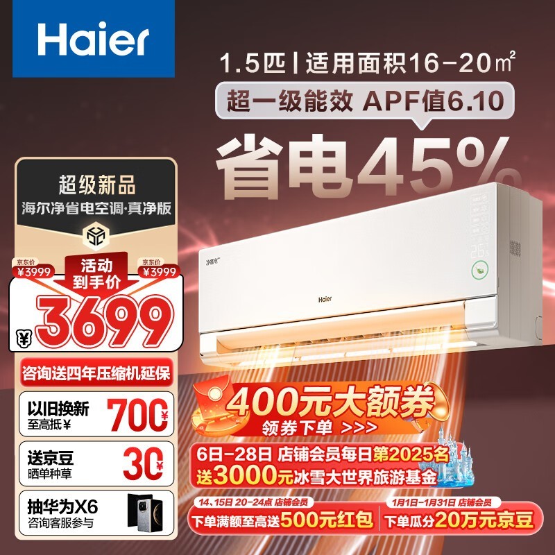 海尔Pro一级能效空调2477元到手 30年保修质量有保障