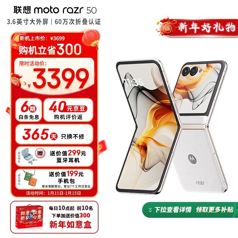 摩根罗拉折叠屏手机优惠仅售3102元 还送真无线耳机