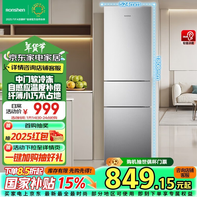 容声三开门冰箱794元 一级能效节能省电