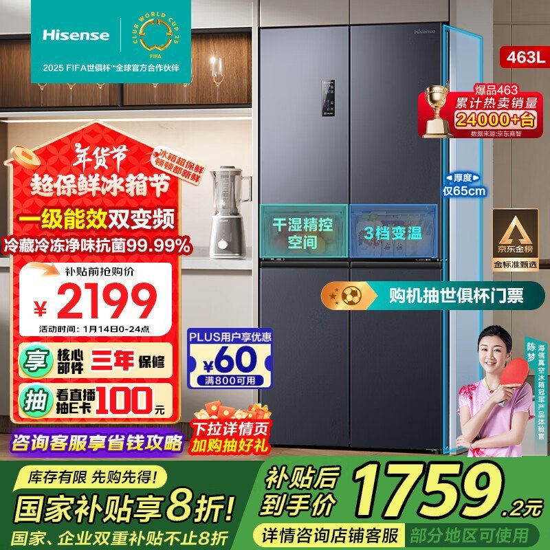 海信BCD-463WMK1DPJ四门冰箱补贴后1402元