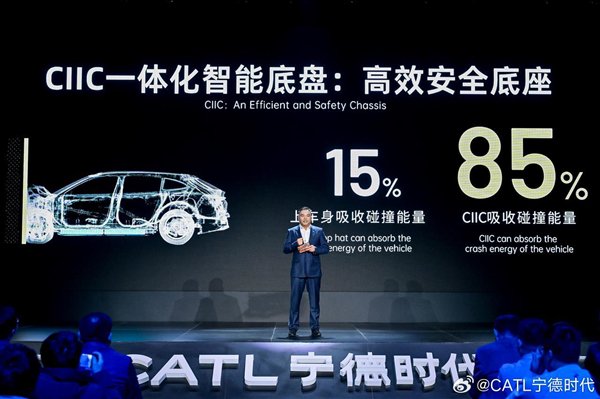 最后,CTC结构也起到了一定作用,简单解释宁德时代CTC结构,是将底盘作为电池的框架,在提高体积利用率,增加电池容量的同时,在120km/h这种极端情况下,也能让电池起到部分传力作用,提升底盘整体刚度。