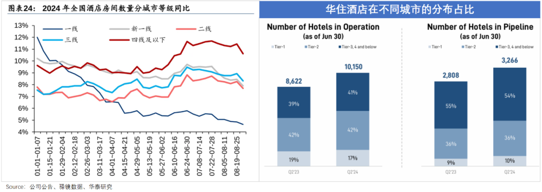 高价酒店风“刮走”了,至少从产品来看是这样。过去六七百一晚的连锁酒店,现在降到“278住三天两晚”“春节元旦不加价”了。不仅卷房价,服务也是“加量不加价”:延迟退房成为标配,会员用券可以“花一天房钱,住两天酒店”;健身房、咖啡厅等也逐渐每家必备,3星的价格能享受5星的服务。从涨价「有恃无恐」到“终于老实了”,原因并不复杂,就是酒店房间卖不动了。数据显示,锦江2024Q2的OCC(入住率)同比回落5.53%,华住2024Q3同比回落1.16%,首旅则连续三季度同比下降。受此拖累,三家连锁酒店的收入、利润均出现了增长乏力。基于此,OTA成了酒店业绩不好的“借口”,前脚华住CEO季琦发小作文痛斥各地门店过度让利,警告“对OTA流量过度上瘾,会削弱自身的核心竞争力”。后脚首旅管理层也在业绩会上公开“甩锅”称:销售费用上行,来源于OTA订单增加带来的佣金压力。不可否认,OTA作为中间商赚走了一定的差价,但连锁酒店也不全然无辜,甚至责任更大——2024年以来,旅客们的心态变了,酒店们押对了趋势却没踩中人群,同质化竞争还愈演愈烈。这无异于亲手制造弱点,并交到了他人手上。1、旅客在左,酒店在右2024年国庆期间,希尔顿、万豪等国际酒店预订规模恢复至2019年的120%左右。相比之下,国内连锁酒店业绩表现与2019年持平,中高端表现尤其拉垮,8月专家纪要显示,中高端酒店入住率、房价双双下滑,撑门面的变成了经济型酒店。如此外热内冷,并非中国消费者不出行了,实际上,希尔顿们话里话外还在“感谢中国”。·洲际在电话会上提到:整个夏天,中国游客都倾向于前往国际目的地,这为我们在其他地区的业务提供了动力。·雅高也直言:很多中国游客出境游,我们在东南亚国家的突出业绩,受益于他们的涌入。也就是说,出境游加快恢复的背景下,国际酒店业绩增长的大旗并没有消失,只是从左手倒到了右手。但对海外布局薄弱的华住们来说,这代表着中高端用户被分流,核心供给被痛击,业绩自然蒙上了阴霾。不过,国内游的风也并没有熄灭,荷尔蒙无处安放的大学生们,“夜爬泰山”“进淄赶烤”一路特种兵整活;捏着口袋做攻略的打工人们,也在每一个假期逃离办公室格子间,到县城「反向旅游」洗班味儿……“下沉游”蔚然成风下,2024年7月,三四线城市的酒店预订增长量比一二线城市高出30%-40%,成为了名副其实的增长“扛把子”,国庆期间入住率也保持增长,而一线则是明显下降。这一波三四线城市的爆火,其实也在华住们的意料之中,早在5年前它们就开始进军下沉市场,且彼时连锁酒店们对“消费升级”深信不疑,个个出手阔绰。华住金辉笃定“下沉市场缺少真正高质量供给”,跑去三四线城市开了一堆汉庭、 桔子酒店;首旅如家下沉布局的“云系列”,也都是中高端房型。如今华住们回头一看,天塌了——核心客群有钱人,把钱洒向了海外,留在三四线玩耍的更多是追求性价比的大众群体,过去的打法有点“枪不对靶”了。为了补救,华住们2024下半年开始加大在三四线经济型房间的扩张力度,但下沉市场有众多民宿、单体酒店贴身肉搏,不断传出“老板含泪转让”的消息,进场就是地狱开局。更何况,下沉目的地数量众多,铺起来的周期和资金投入,很容易成为不可承受之重;即便铺成了,也有明显的淡旺季特征(如雪乡哈尔滨等),无法提供稳定的客流。阴差阳错下,当前“出境游、下沉游”的两端分化里,连锁酒店们基本没捞着多少好处。更棘手的是,2024年8月的行业专家纪要提到:今年的商旅需求不及休闲游;洲际大中华区的业绩,也表现出leisure(休闲)复苏强于business(商务)的状态。这意味着,华住们的客户基本盘也面临着新一轮洗牌,话语权或将被削弱。毕竟商务住宿需求占比更高的市场,主动权掌握在酒店手里,而以旅游需求为主的市场,则更依赖OTA。具体来看,2019年,美国商务出行市场占酒店市场总规模的40%,来自OTA渠道的预订占在线预订市场比仅40%;同期,欧洲商务出行人次占比11%,OTA预订占比则达到了60%。国内也是类似的规律,华住商务出行占比高,其会员体系中,最初级的免费会员(大多是休闲散客)回头率仅有1%左右。如此泾渭分明,在于商旅出行频次很高,往往是公司与酒店签约,公司通过直销合作,拿更优惠的打包价,而酒店收获了稳定、忠实客户。而旅游住宿,更倾向于先定景点,再订酒店,打一枪换一炮下,客户对传统的会员积分换房、换早餐等需求有限,更愿意选择差异化、个性化酒店。相比商务旅客全年出差,旅游出行也更容易扎堆,会形成峰谷效应,而酒店只能被动承受这种要么人满为患、要么独守空房的风险。在此背景下,OTA平台打包游、主题游的模式,可以一定程度上调节峰谷波动,比如,在武汉欢乐谷的淡季,捆绑层出不穷的演唱会,给酒店引流。基于此,国内休闲市场爆发更快之下,连锁酒店纷纷抱紧OTA大腿,以华住为例,虽然集团严令旗下酒店OTA占比不能超过30%,但加盟门店为了提高入住率仍然“无所畏惧”,已有个别门店的OTA渠道占比涨到了50%。总而言之,旅游消费和旅客结构变了,而酒店集团的供给没能及时变,这就是问题关键。当然,这轮酒店危机不仅有“天灾”的成分,还有“人祸”作祟。2、同质化愈演愈烈,引发连锁反应不管你愿不愿意,现在只要在国内住宿,就很难避开“似曾相识”感。各家酒店的房间装潢,隐掉名字后放在一起,没几个人分