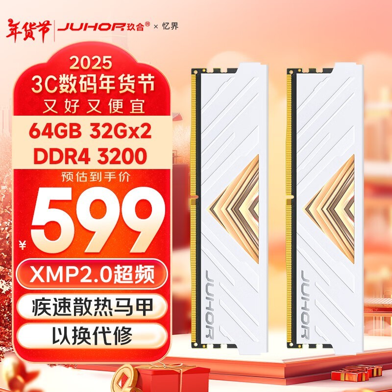 玖合忆界系列白甲内存条64GB套装仅售576元!省钱省事省心!