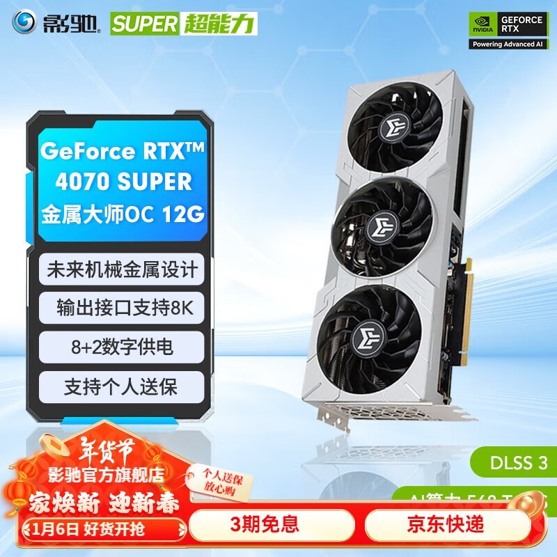 影驰 RTX 4070 SUPER 显卡特价包邮到手仅4989元!