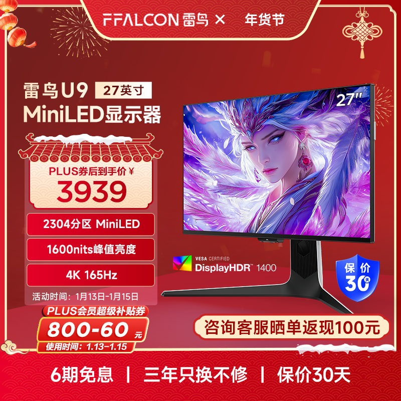 FFALCON雷鸟显示器旗舰店限时优惠!27英寸Mini-LED显示器到手3809元