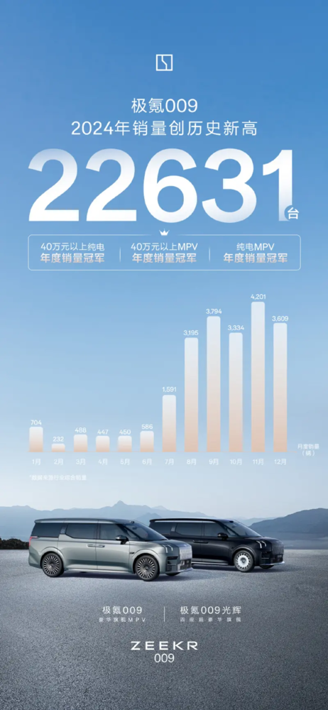 极氪009拿下2024年中国纯电MPV销冠 售出22631辆