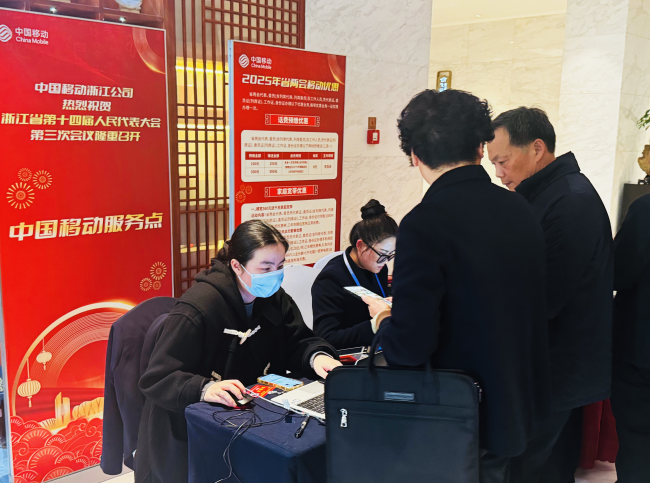会议期间,浙江移动还为两会代表们提供的“无纸化阅文”等智能化应用服务,代表们可以进行入住酒店、会议议程、座位安排、会议文件等相关情况的智能查询,智能化手段提高会议管理效率,也为人大代表更好履职提供重要帮助。