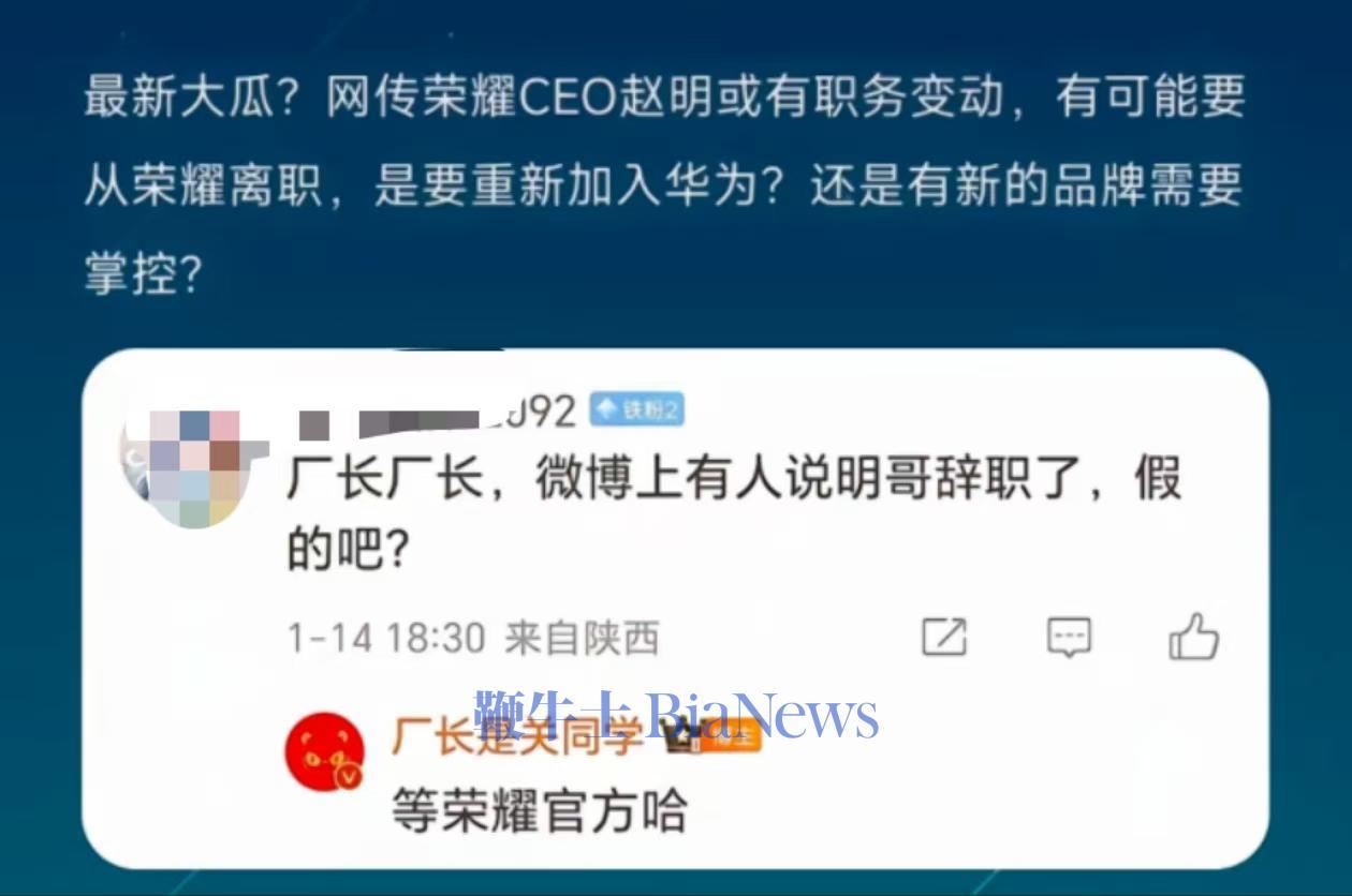 荣耀CEO赵明离职?知情人士:假消息