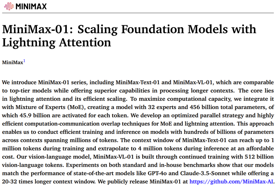 技术报告:https://filecdn.minimax.chat/_Arxiv_MiniMax_01_Report.pdf