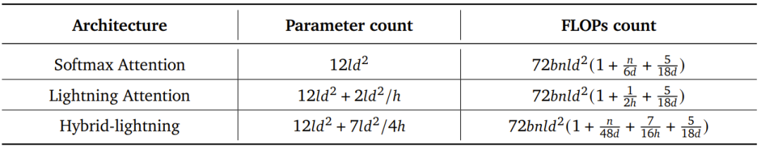 效果如何?下表给出了根据层数 l、模型维度 d、批量大小 b 和序列长度 n 计算注意力架构参数量与 FLOPs 的公式。