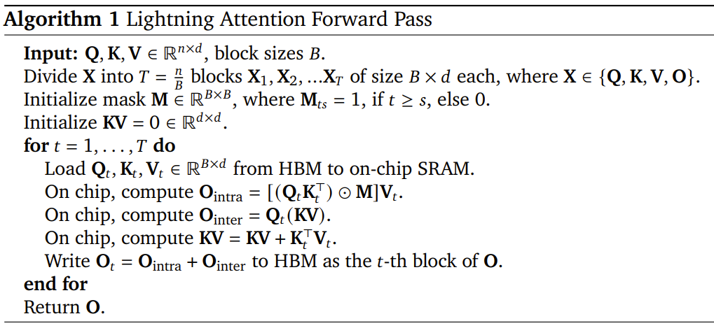 以下是 Lightning Attention 前向通过的算法描述。