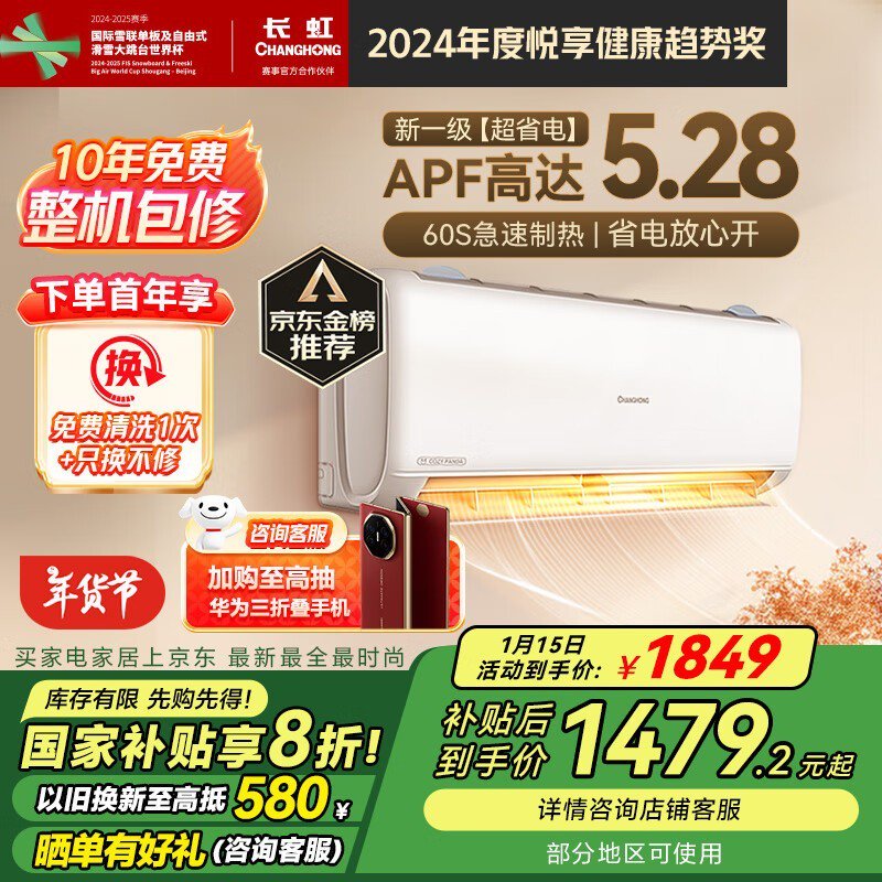 长虹熊猫懒系列空调1433元 采用智能操控技术