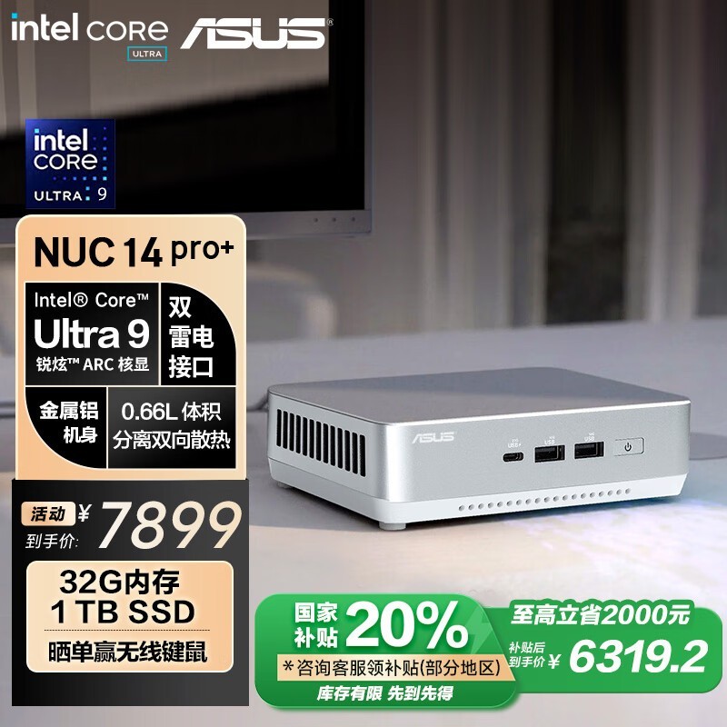 华硕ASUS NUC14 Pro迷你主机促销价7799元