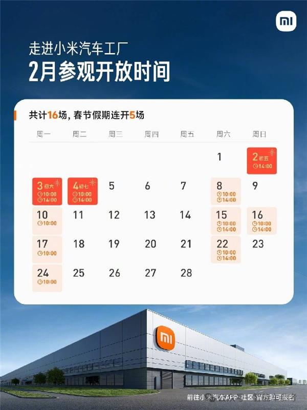 活动老少咸宜,雷军还考虑到了中小学生研学参观需求,正月初七到十五之间还有3场。