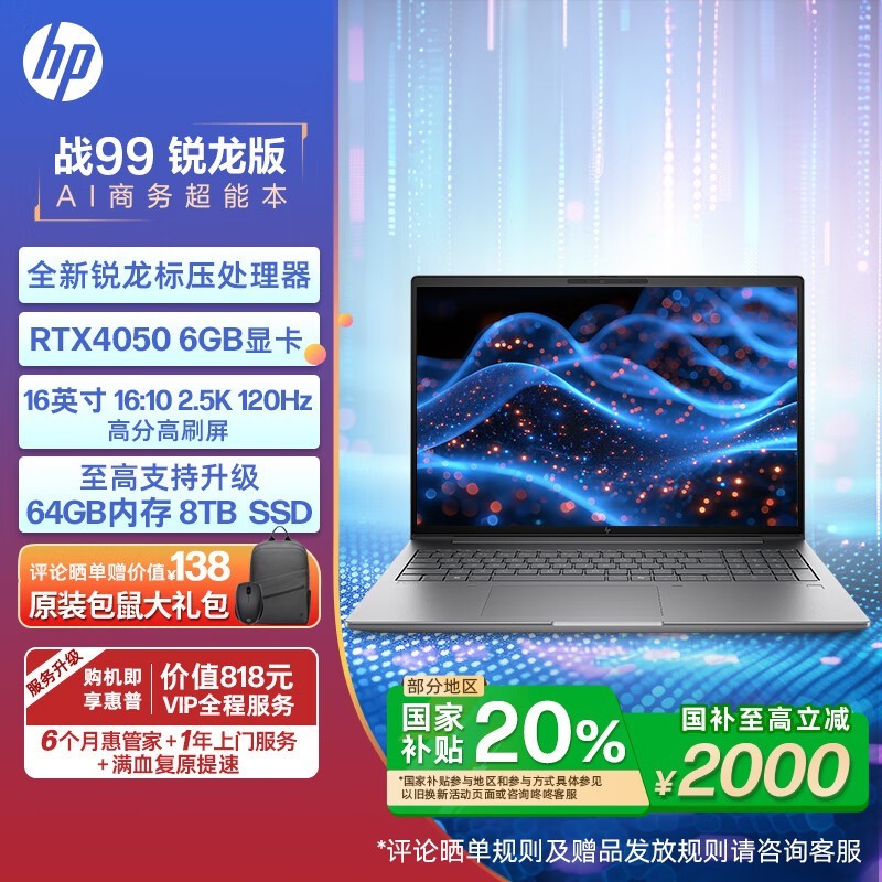 惠普战99 2024款轻薄高性能笔记本电脑 到手7959元