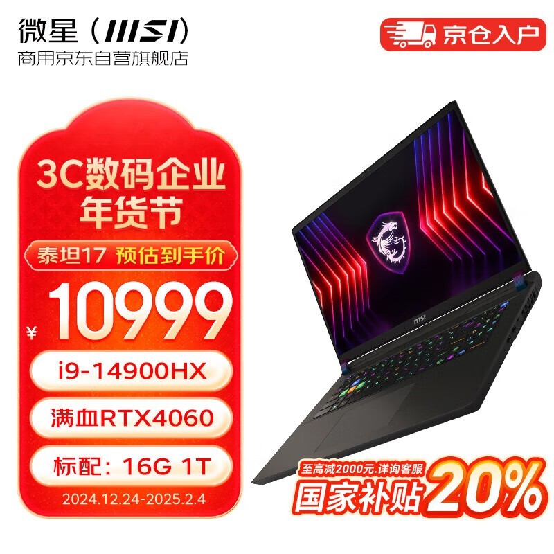 微星泰坦17 2024 酷睿i9 17英寸设计剪辑办公笔记本电脑