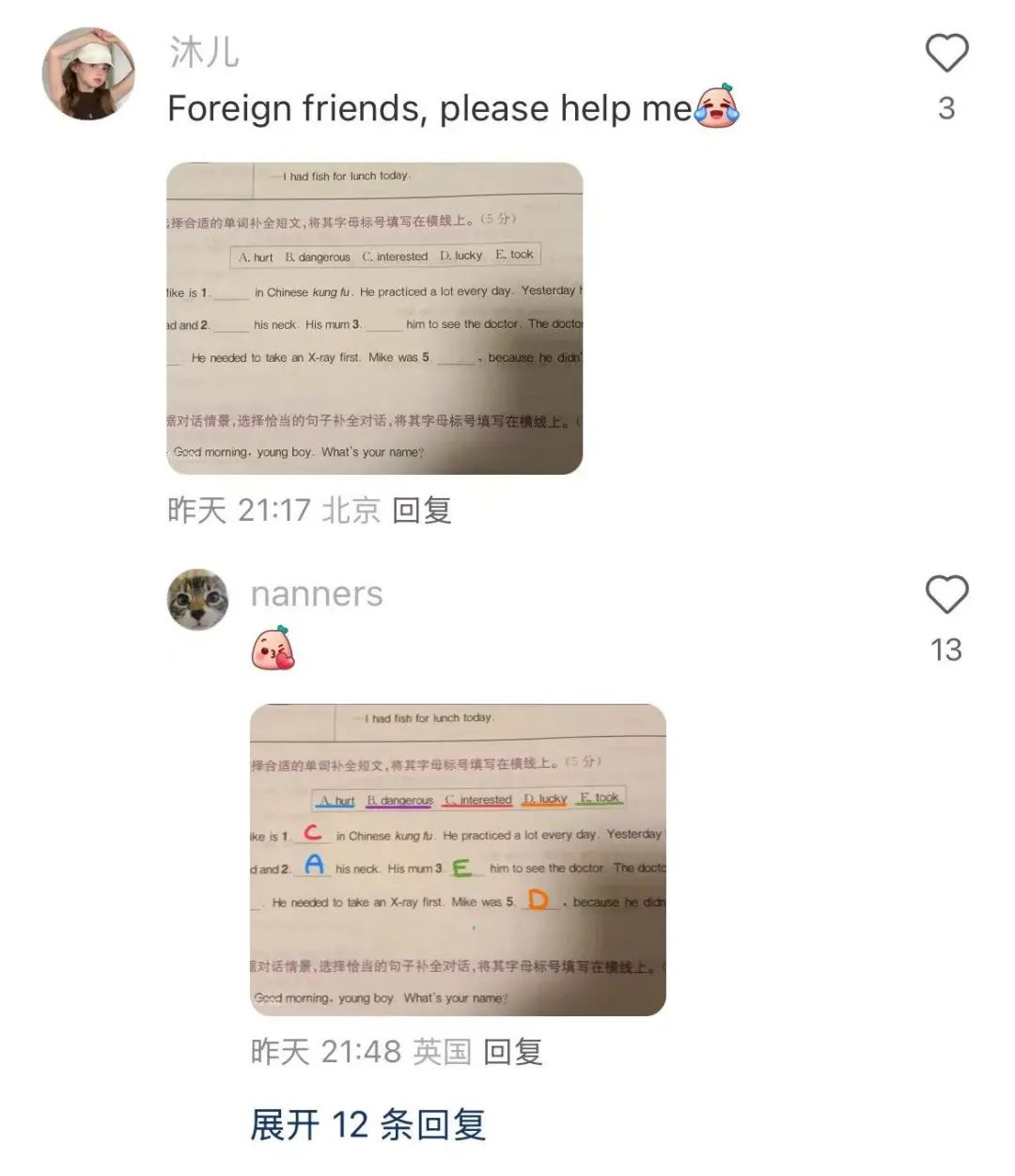 云撸猫狗、吃饭日常、健身日常,还有人大开脑洞,与中国网友互换作业、2元帮起中文名……