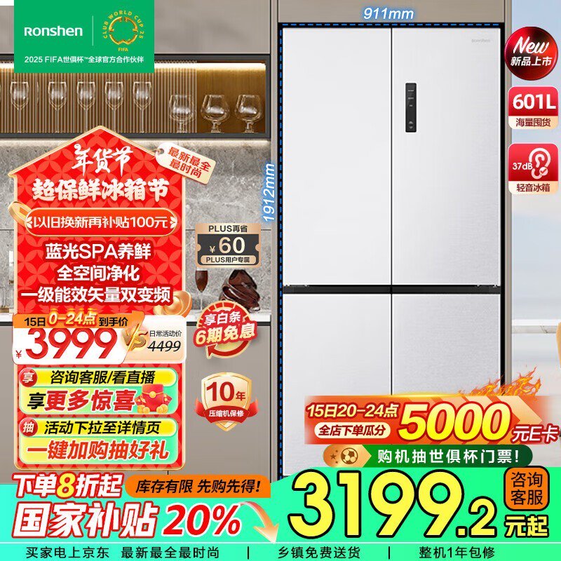 容声 BCD-601WD11FP 蓝光养鲜系列冰箱2746元到手