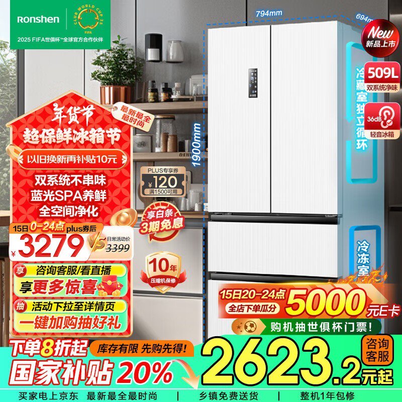 容声 BCD-509WD18MP 法式多门冰箱京东优惠价格2393元