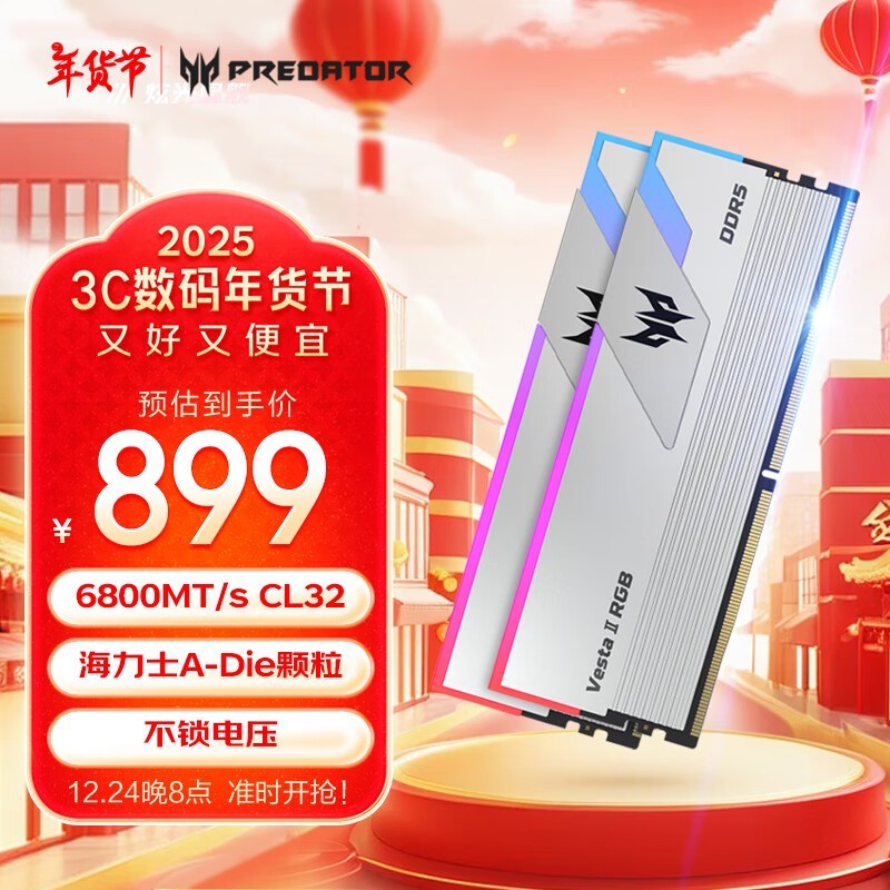 宏碁掠夺者PREDATOR 32G套装 DDR5内存条优惠促销中 仅售899元