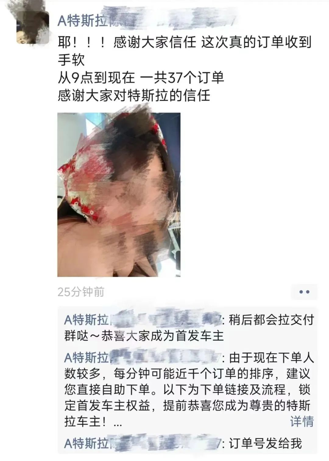 一位特斯拉销售的朋友圈。图 / 网络