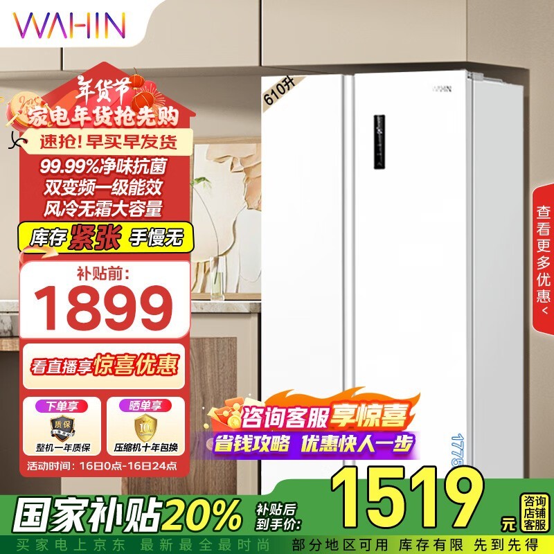 华凌HR-610WKPZH1对开门冰箱限时优惠!