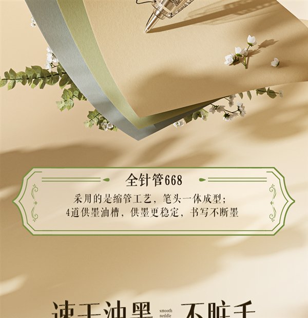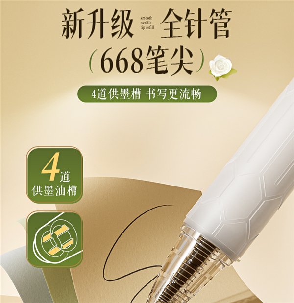 新升级全针管668笔尖,4 道供墨槽,书写更流畅。