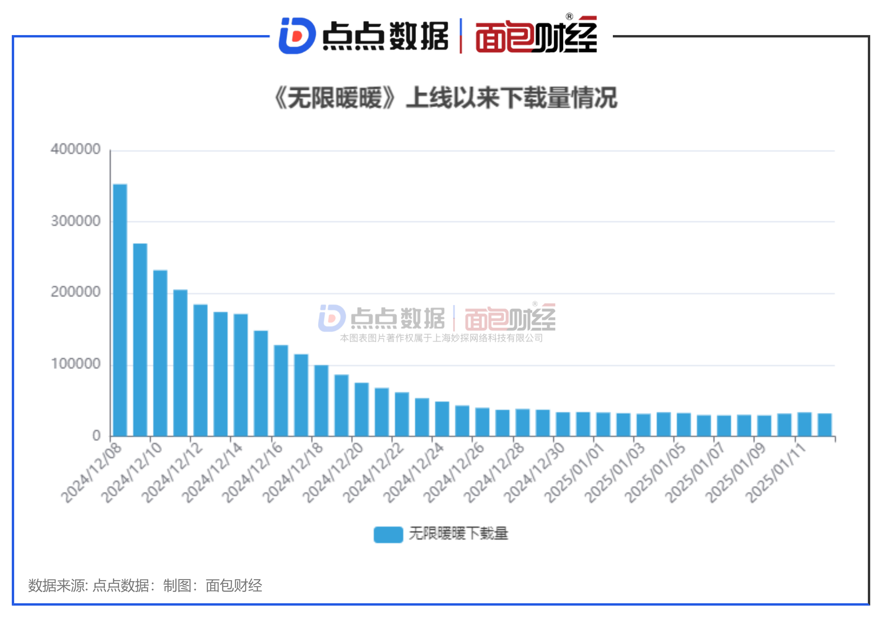 《无限暖暖》是叠纸游戏旗下叠纸游戏开发的多平台开放世界换装冒险游戏。12月5日,该游戏上线全球。点点数据显示,《无限暖暖》上线当天在中国iOS畅销总榜排名11。