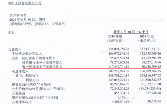 值得一提的是,据中邮证券2024年中期财务报告显示,在2024上半年,公司资产管理业务手续费净收入约为1.17亿元,相较于上年同期的0.41亿元,实现了较大幅度的增长。